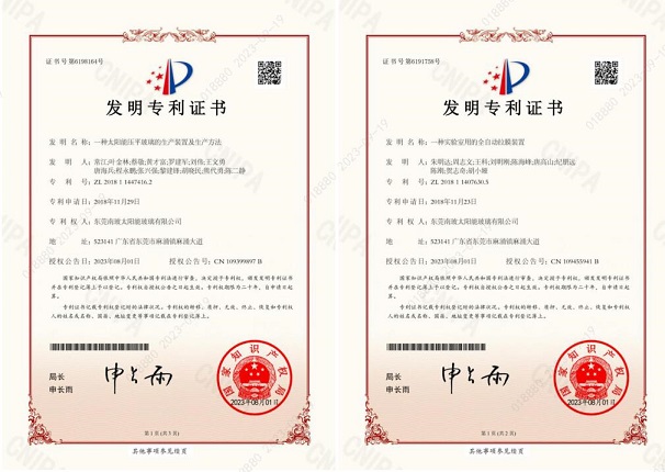 近日,東莞太陽能榮獲由國家知識產權局授予的兩項發(fā)明專利證書:“一種實驗室用的全自動拉膜裝置”和“一種太陽能壓平玻璃的生產裝置及生產方法”。