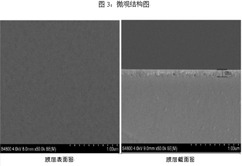 第五代SuperAR膜太陽能玻璃具有均勻的微觀結(jié)構(gòu):微觀表面光滑、鍍膜面整潔、幾乎無突出顆粒,截面整齊,膜層與玻璃界面有10-50nm的密集孔洞存在,在具有很好的增透效果的同時更好地保證了膜基結(jié)合力。